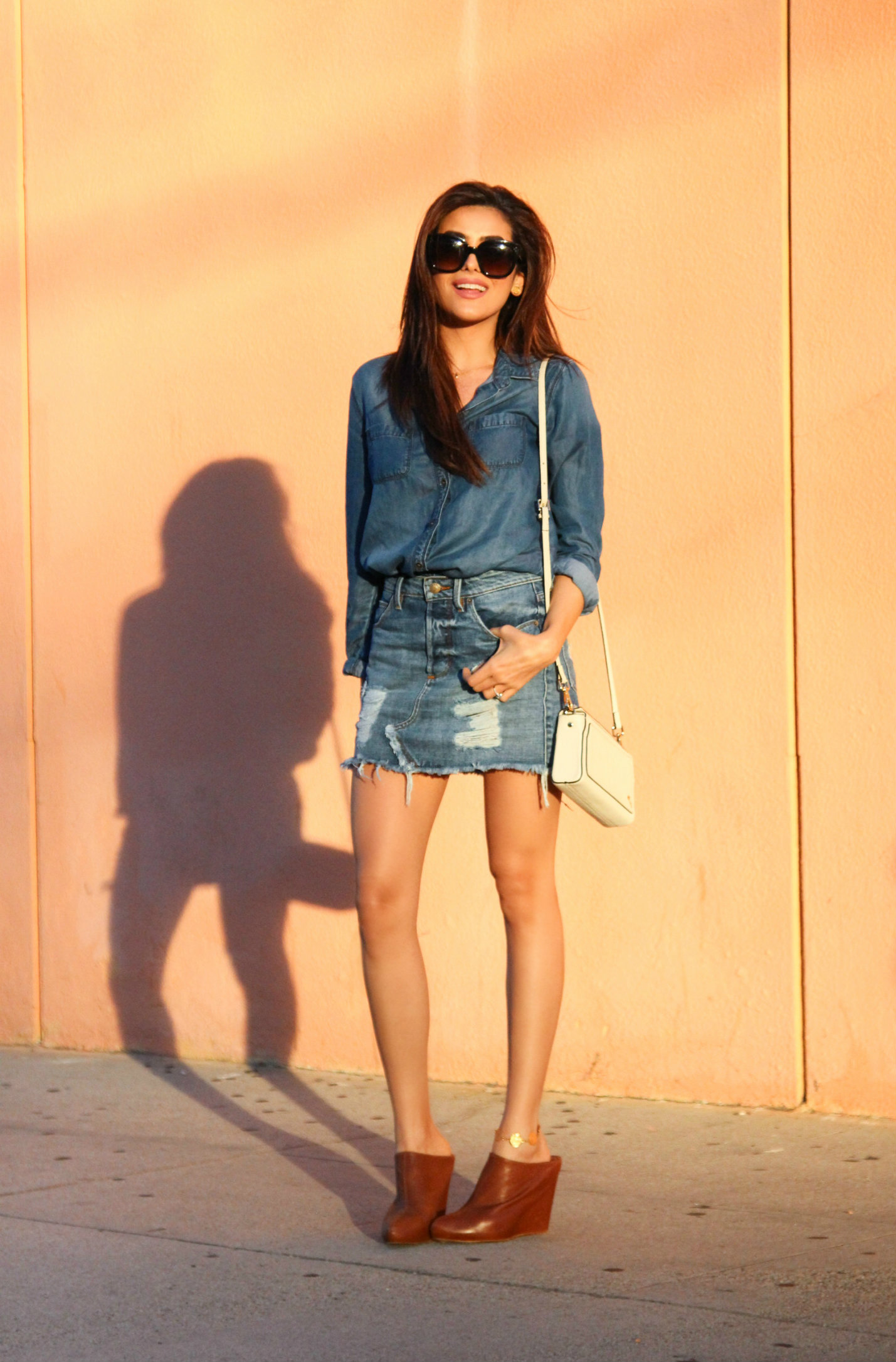 (Outfit Details) Shirt: Halogen (old, shop similar) // Skirt: Guess (on sale now for $25!) // Shoes: Zara (old, shop similar) // Bag: Florian London // Sunglasses: Celine (look for less)